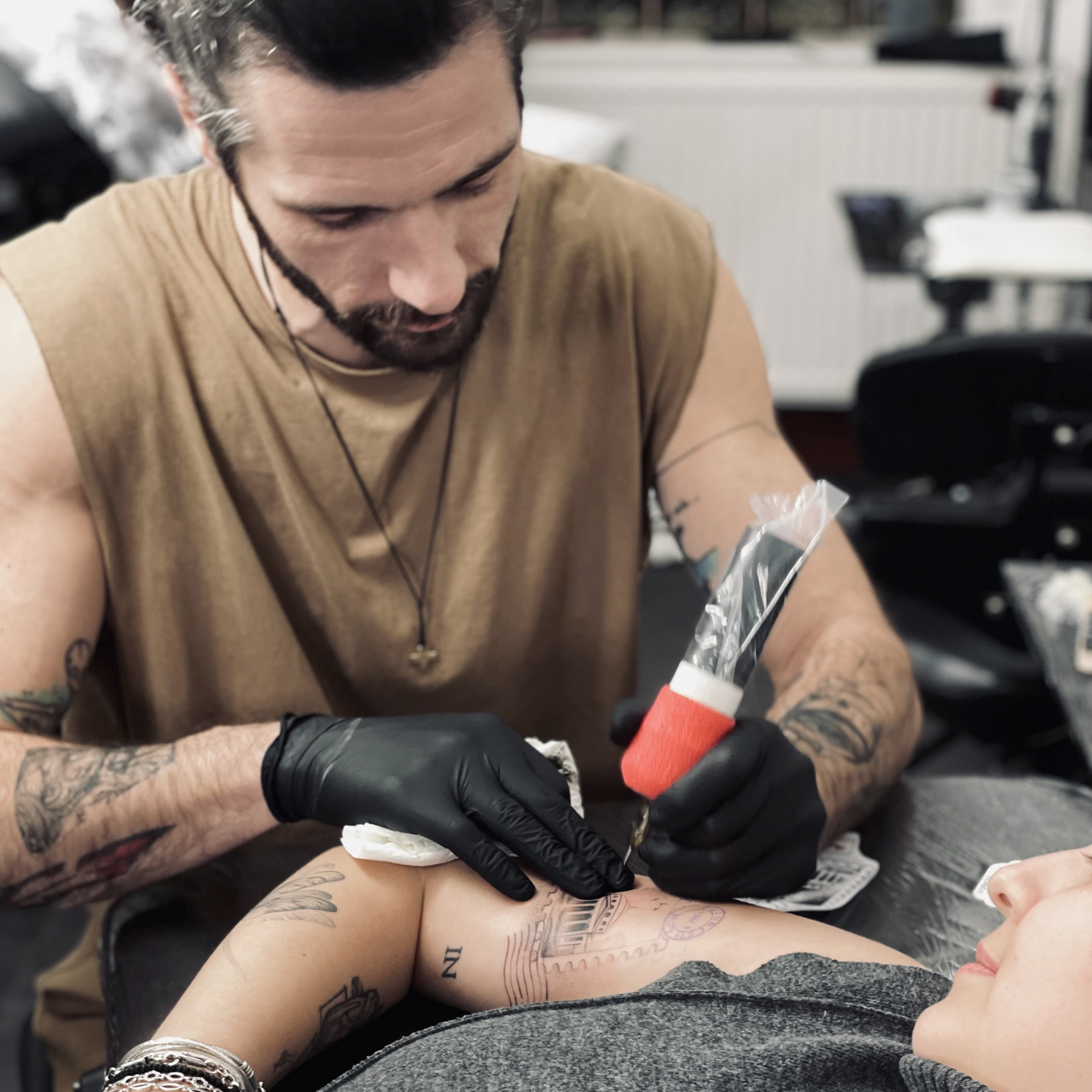 I started learning about tattoos and loving them while getting my own. Drawing was something I always enjoyed doing and at that time, I had been working as a digital designer for many years. Tattooing seemed to be an obvious career choice. Having been tattooing for almost 9 years now, I can easily say it was a great one as well.​​​​​​​
